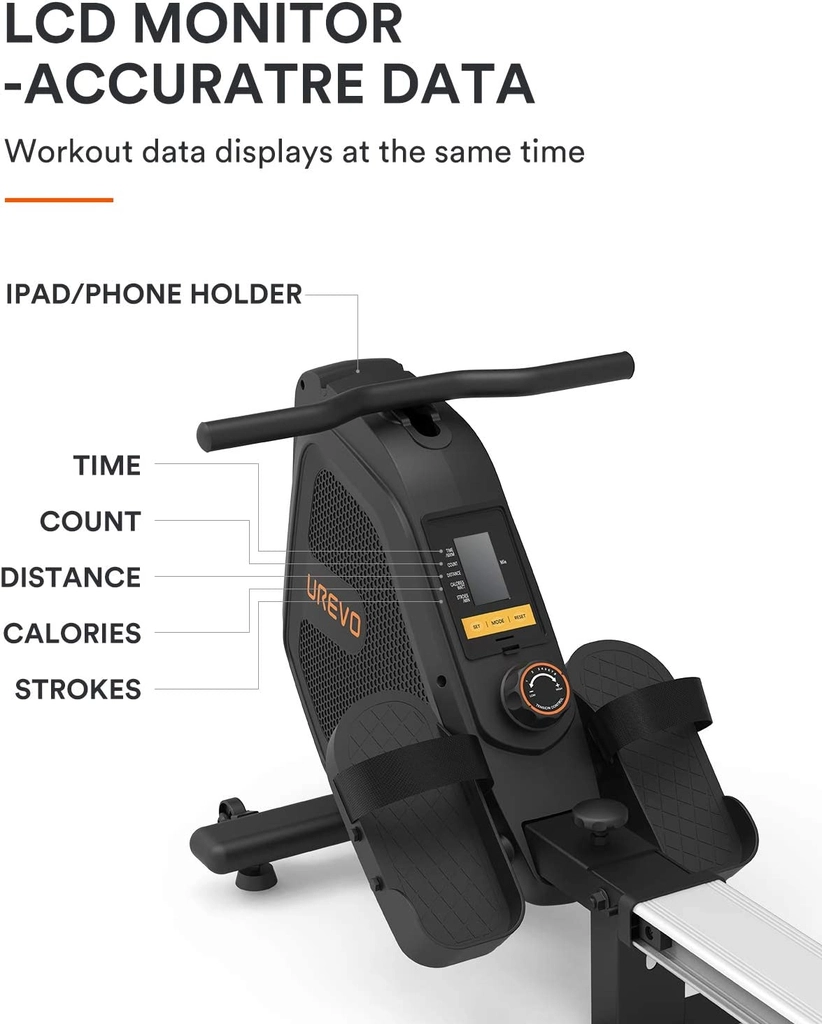 Theo dõi tiến trình của bạn trên máy Chèo thuyền từ tính UREVO rất đơn giản với màn hình Màn hình LCD hiển thị thời gian tập luyện, số lần chèo thuyền, khoảng cách, lượng calo được đốt cháy, tần suất chèo thuyền. Hiển thị đầy đủ thông số, tiến trình của bạn để hỗ trợ bạn theo dõi tất cả mục tiêu tập thể dục của mình.