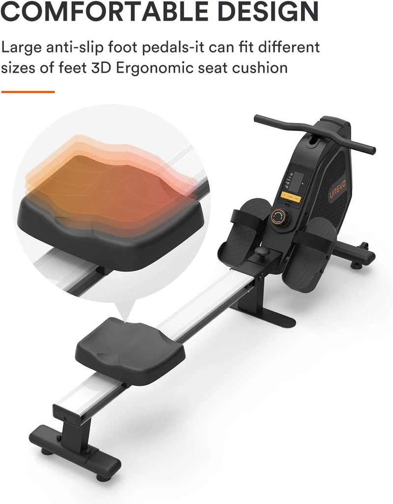 Urevo folding rower còn chịu được trọng tải lên đến 330 lbs, điều này cho phép bất kỳ ai cũng có thể thoải mái tập luyện với máy.